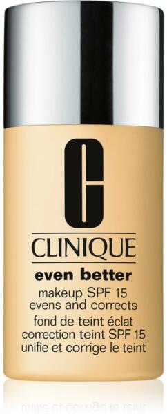 Clinique Even Better Makeup SPF 15 Evens and Corrects, 30 ml, Alapozó nőknek, Minden smink alapja a hibátlan arcbőr, akár feltűnő esti vagy nagyon természetes nappali sminkről van szó. Ebben segít Önnek a tökéletes Clinique Even Better Makeup SPF 15 Evens and Corrects alapozó. Kiválóan egybeolvad a bőrével, és gondoskodik a színtónusa tökéletes egységesítéséről. Fedőképességének köszönhetően azonnal eltakarja az olyan kisebb bőrhibákat, mint a pigmentfoltok, a bőrpír vagy a pattanásnyomok. Segítségével pillanatok alatt elérheti az egységes színű megjelenést, amely kiváló alapul szolgál majd a további sminkeléshez. Tulajdonságok: kiváló fedőképesség alkalmazkodik az arcbőr színéhez rugalmassá és finommá teszi az arcbőrt hidratál Használata: Vigye fel az alapozót az arca minden alappontjára, a homlokára, orcáira és az állára.