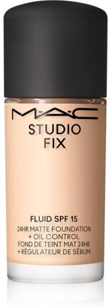 MAC Cosmetics Mini Studio Fix Fluid SPF 15 24HR Matte Foundation + Oil Control, 15 ml, Alapozó nőknek, A kiváló minőségű MAC Cosmetics Mini Studio Fix Fluid SPF 15 24HR Matte Foundation + Oil Control alapozó egységesíti az arcbőre színárnyalatát és elfedi az apróbb hibáit. Tulajdonságok: matt hatást ad az arcbőrnek kiváló fedőképesség egységesíti az arcbőr színárnyalatait hosszan tartó hatás napsugárzással szembeni védelmet nyújt Használata: Vigye fel gyengéd mozdulatokkal az alapozót az arcára az ujjaival, szivaccsal vagy ecsettel, majd kenje szét alaposan és egyenletesen.