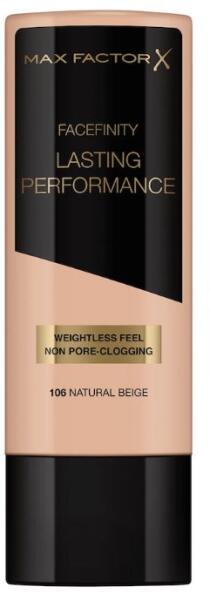 A Max Factor Lasting Performance 106 tartós, érintésálló alapozó üde, hibátlan, telt, sima és természetes eredményt biztosít, 8 órán át az arcbőrön marad. Selymes formula, mely könnyedén felvihető.