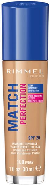 • Rimmel Match Perfection Nr. 100 Ivory árnyalatú alapozó. Tökéletes arcbőr: a bőrhöz illeszkedik